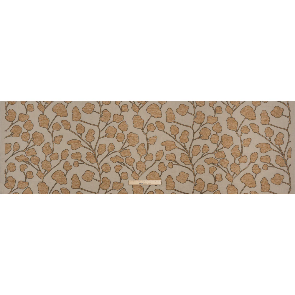 Turn over a new leaf for your interior style with this Coin Branches Corded and Embroidered Drapery Woven! Embroidered orangey-brown branches are budding across a beige woven, outlined by dark bronze cording to create a dimensional, visually intriguing face. It has a lightweight, malleable drape and is mostly opaque. Refresh country kitchens, breezy living rooms, and mature bedrooms with curtains and valances. A lining may be desired for added structure and opacity.