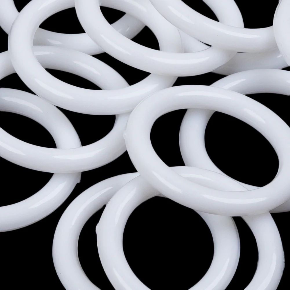 Versatile and functional, these Dritz 14ct White Plastic O-Rings should always be on hand. 14 white plastic rings are presented for your lingerie-making needs. Measuring 1⅛ inches in diameter, create bralettes, camis, and bathing suits with adjustable straps, or find use in home decor by making balloon shades, hanging tapestries, or creating macrame!