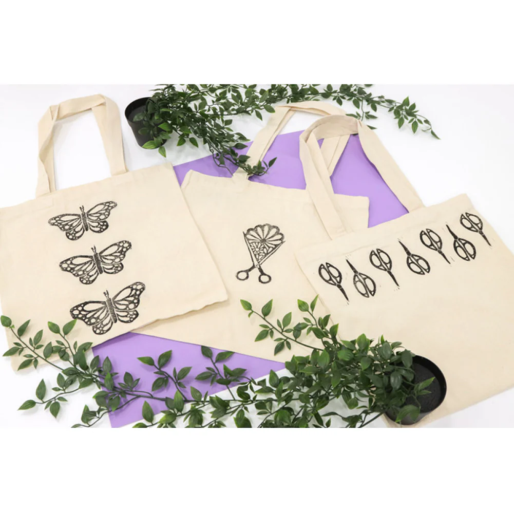 Fabric Block Printing Kit! Perfect for someone who wants to explore printmaking on fabric, the contents of this kit allow you to begin creating your own patterns and designs on fabric, shirts, tote bags, and more. Included are two Speedball Speedy-Carve blocks (one 3 inches by 4 inches and one 4 inches by 6 inches), a six-piece carving tool set, a soft rubber brayer, a combination inking plate and bench hook, black and white printing ink, transparent ink extender, brush cleaning soap, a blank tote bag, and an instructional booklet to help you get started! Expand your kit with additional colors of printing ink, and consider using