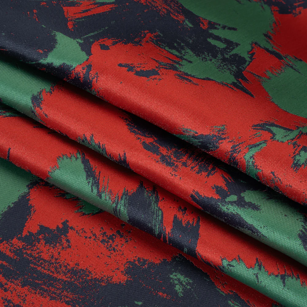 Luxury Polyester Brocade - Red, Green and Navy Blue Abstract Brushstrokes