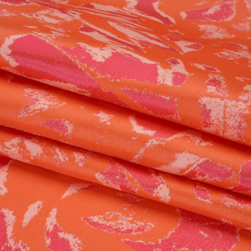 Luxury Polyester Brocade - Sparkling Orange and Pink Abstract Markmaking