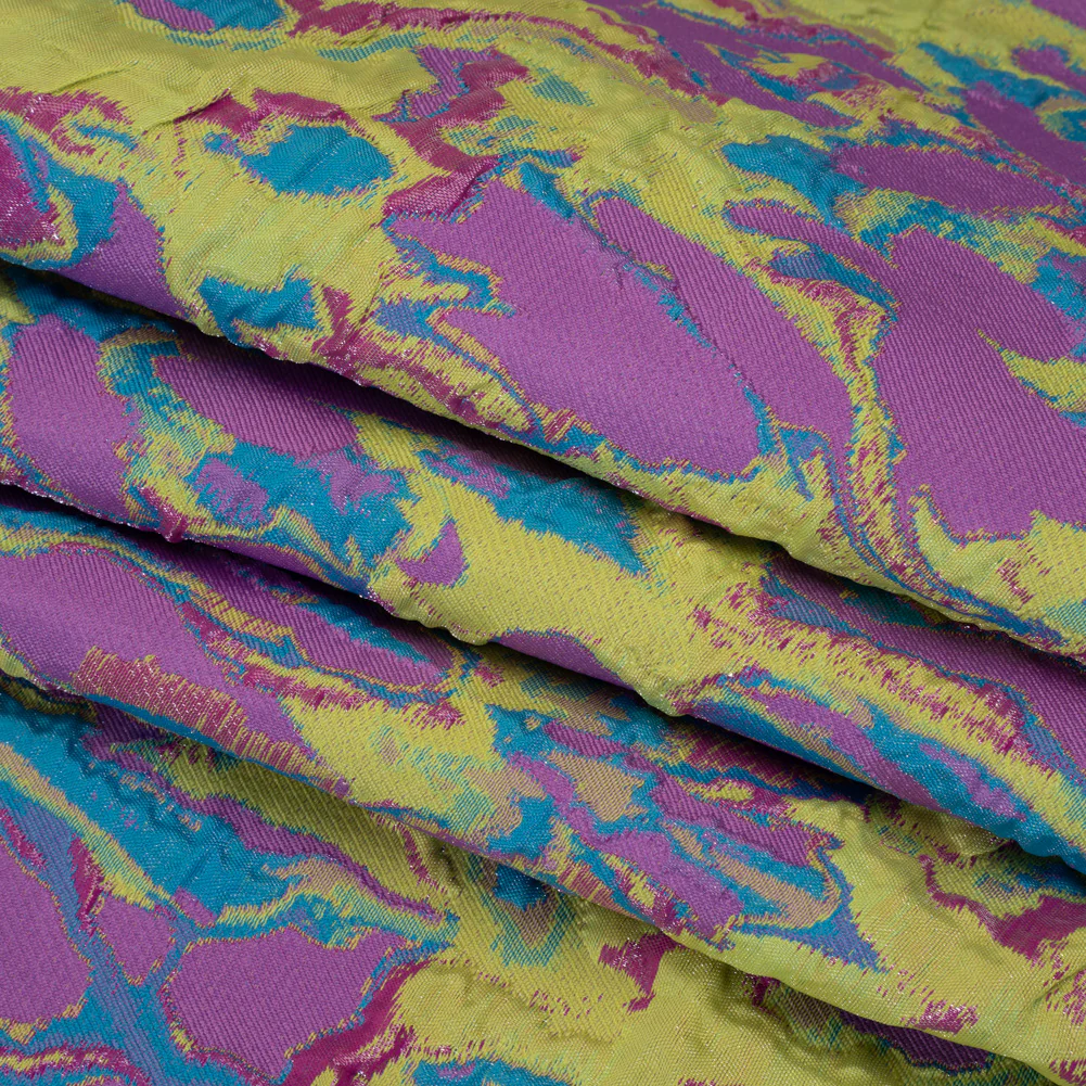 You’re not hallucinating this Acid Yellow, Purple and Fuchsia Melting Abstract Metallic Luxury Brocade—featuring a tactile hand and semi-structured, voluminous drape.