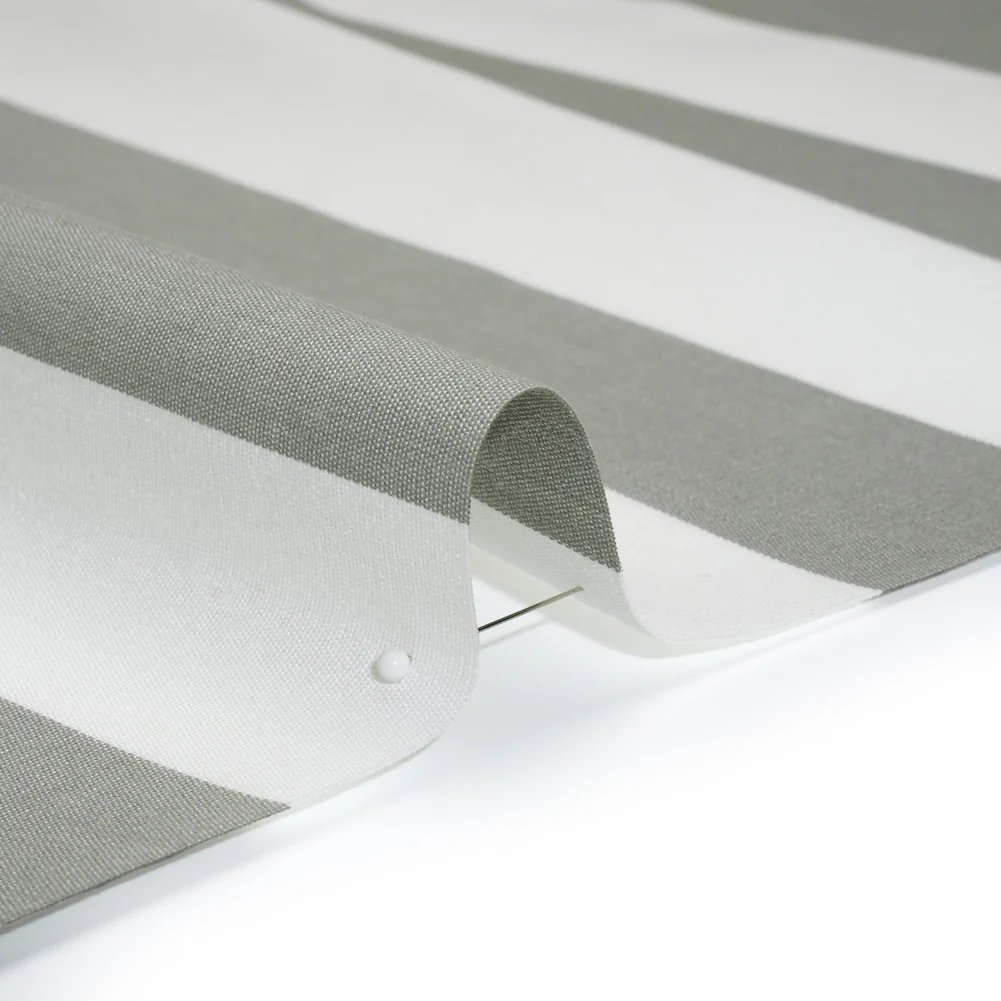Intent shapes simplicity and with this Light Gray and White Awning Striped Outdoor Canvas you can achieve your dream minimalist design—featuring a tactile hand and stiff drape.
